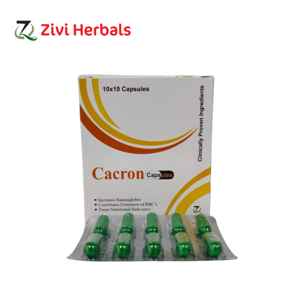 Zivi Herbals Cacron Capsules are enriched with clinically proven Ayurvedic ingredients that help increase haemoglobin levels, aid in red blood cell (RBC) formation, and correct nutritional deficiencies. Ideal for individuals with anaemia, fatigue, or low iron levels, this herbal supplement supports overall vitality and immune health naturally.